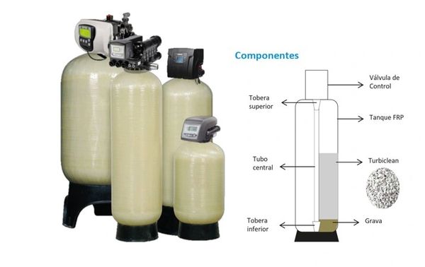 Nuestros Filtros Turbidex son sistemas de filtración de sedimentos que usan como medio filtrante a una zeolita natural que retiene particulas hasta 3 micras. Por sus propiedades únicas, además de filtrar el agua, incorpora el intercambio iónico, la sedimentación y f loculación para producir un agua más cristalina, hasta 0.1 NTU.
