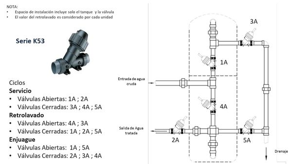 FILTRO TURBIDEX DE 45 A 150 PIE3 - VALVULA TRIPLEX K53